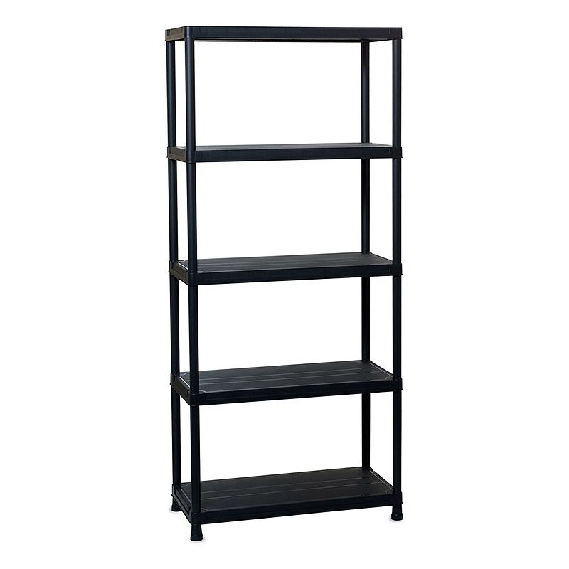 Hylla med fem plan. Maxvikt per hyllplan är 50 kg.